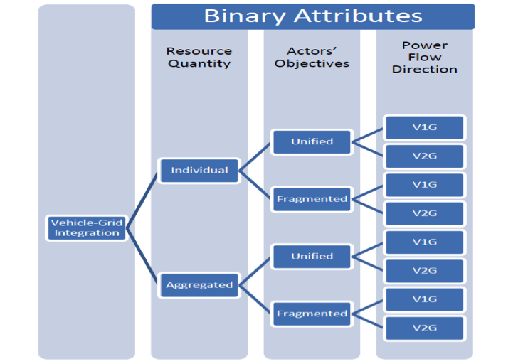 - Bidirectional power flow (V2G): One or many resources and unified or fragmented actors.